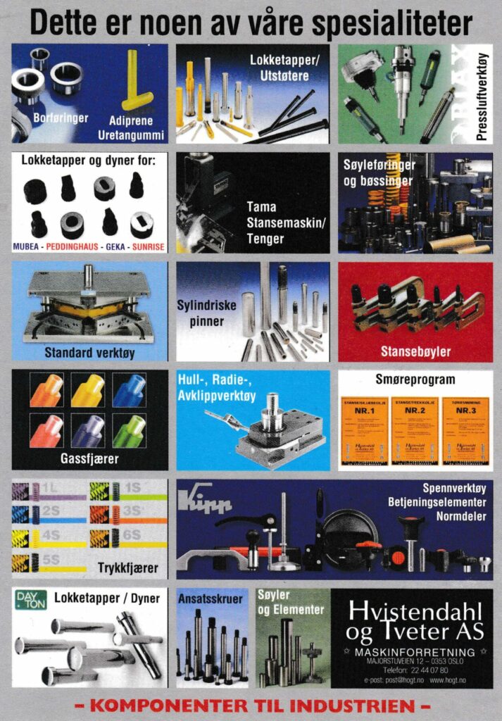 Hvistendahl og Tveter har over 50 år med leveranser til norsk industri. Som spesialister på stanseverktøy har vi levert utstyr til både de store lokomotivene i industrien, og til frittstående verktøymakere.